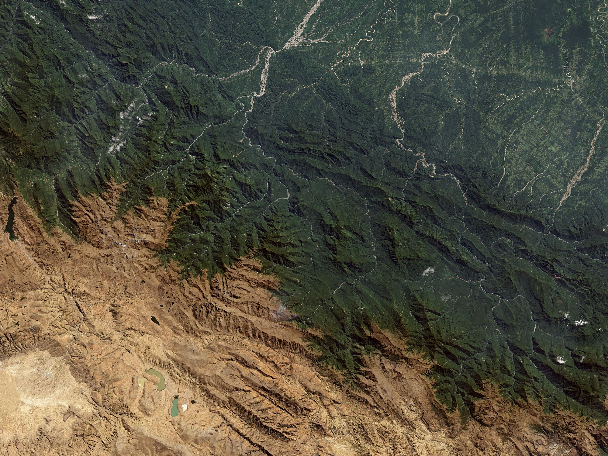 ![]() | Bolivianische Anden Dieses Bild, das vom NASA-Satelliten Landsat 7 aufgenommen wurde, zeigt eine dramatische Änderung des Landschaftscharakters etwa 250 Kilometer südöstlich von La Paz, der Hauptstadt Boliviens. Das wohl auffälligste Merkmal in diesem Naturfarbenbild ist der dramatische Wechsel zwischen den Brauntönen im Südwesten und dem tiefen Grün im Norden und Osten. Der trockene Südwesten liegt im Regenschatten der Berge. Zum englischen Begleittext (.docx) hier klicken! Quelle: NASA Earth Observatory |