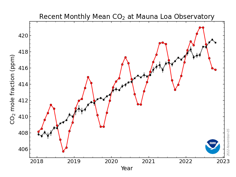 Werte für Oktober 2022 und 2021: Quelle und aktuelle Werte: NOAA ESRL | ||