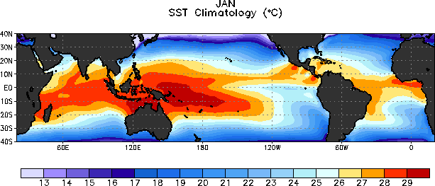 ![]() | Mittlere Meeresoberflächentemperaturen in den Tropen und Subtropen - Animation des Jahresverlaufs