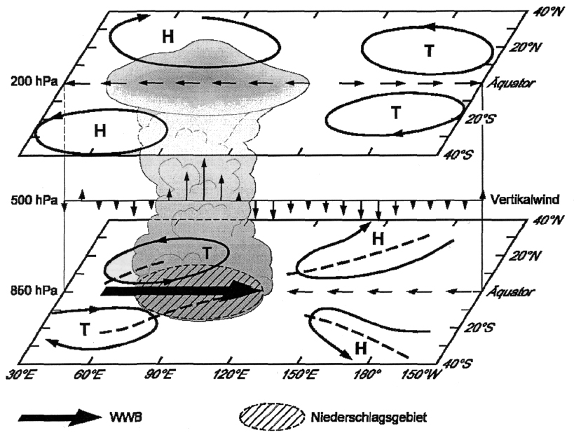 WWB werden mit als treibende oder auslösende Kraft (Forcing) für ein El Niño-Ereignis angesehen. Bei dieser Einschätzung steckt man allerdings in einem Henne-Ei-Problem.