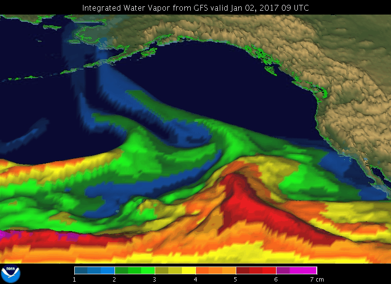 In den 1970ern wurden Feuchtigkeits-Förderbänder (engl . conveyor belts of moisture) in der Atmosphäre entdeckt. 1994 beschrieben Yong Zhu und Reginald E. Newell vom Massachusetts Institute of Technology nach der Auswertung von Daten des Europäischen Zentrums für mittelfristige Wettervorhersagen in Reading viel schmalere Bänder mit äußerst hohem Feuchtigkeitsgehalt. Sie benannten das Phänomen atmosphärische Flüsse. Zu jeder Zeit sind ungefähr fünf solcher atmosphärischen Flüsse in der Atmosphäre und transportieren dabei ca. 90 % der Luftfeuchtigkeit aus der Äquatorregion in die mittleren Breiten. Jährlich treffen mindestens neun solcher Flüsse die kalifornische Küste, und transportieren dabei 30 bis 50 Prozent des Niederschlags an die amerikanische Westküste. Atmosphärische Flüsse entstehen auch über anderen Meeren als dem Pazifik.