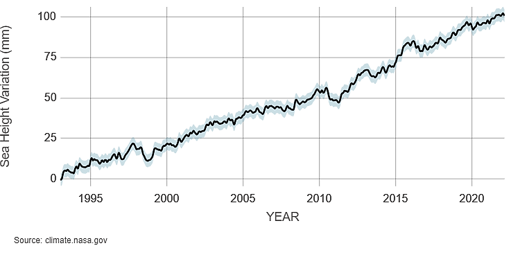 Seit der Mitte des 19. Jahrhunderts in globaler Betrachtung deutlicher Anstieg des Meeresspiegels, der allein im 20. Jahrhundert bei etwa 17 cm gelegen hat. Der durchschnittliche Meeresspiegelanstieg im Zeitraum von 1901 bis 2010 wird im Fünften Sachstandsbericht des IPCC mit 19 ±2 cm angegeben. Seit 1993 steigt der Meeresspiegel um durchschnittlich 3,2 mm pro Jahr.
