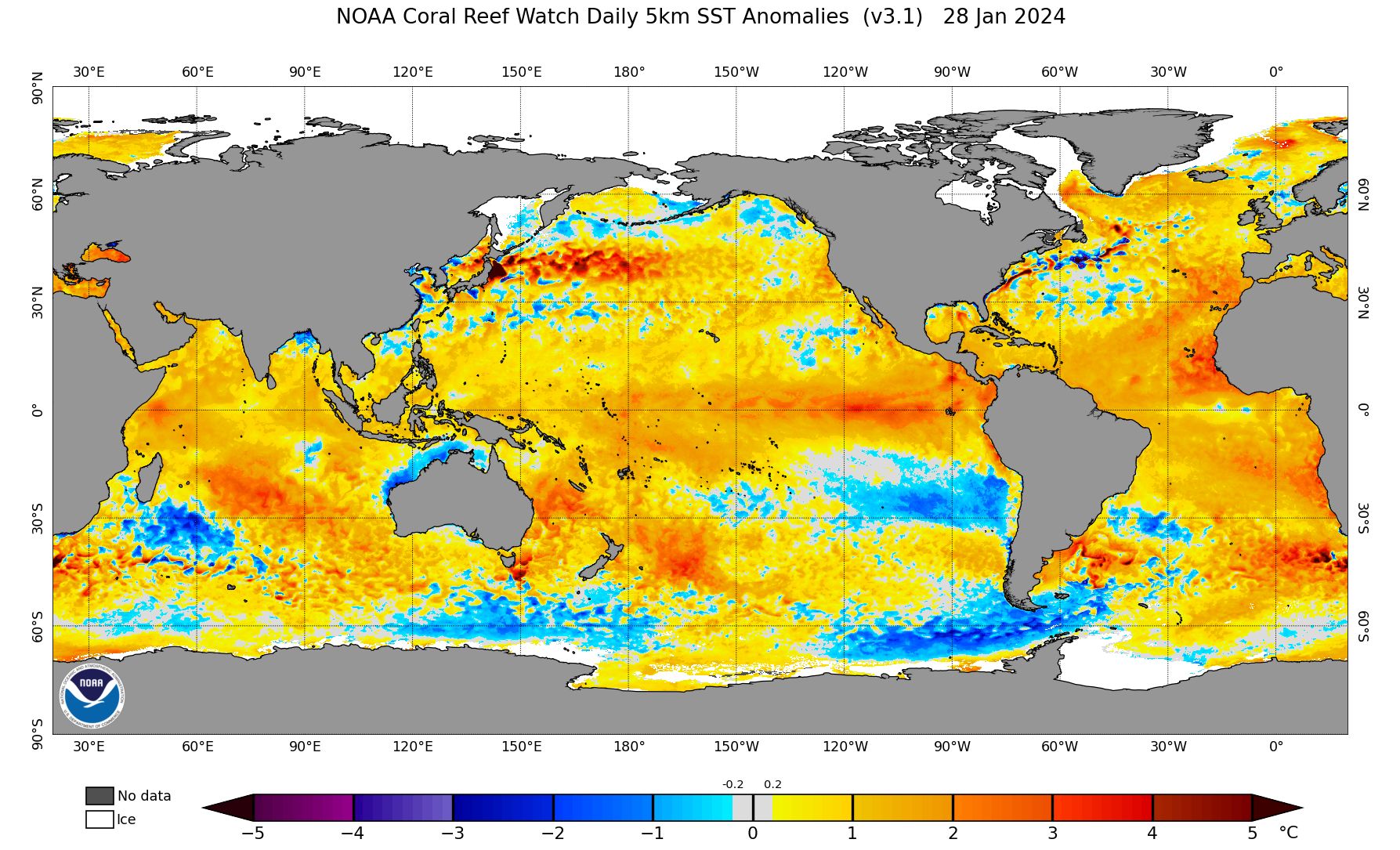 Die Meereoberflächentemperatur wird global durch den Wärmeüberschuss der Tropen gegenüber den höheren Breiten bestimmt, die sich durch die höhere Sonneneinstrahlung in den Tropen ergibt. Dies führt zu einer Differenz der SST zwischen Äquator und Polen von ca. 30 °C. In den Tropen, inklusive des tropischen Pazifiks, beträgt die höchste SST um 28 °C, maximal 30 °C. Dies ist beträchtlich kühler als die üblicherweise auf Land gemessene Höchsttemperatur von ca. 50 °C. Es wird angenommen, dass der wichtigste Regulationsmechanismus hinsichtlich der maximalen Ozeantemperaturen die Wolkenbildung ist. Die Wolkenbildung nimmt bei Wassertemperaturen von über 27,5 °C deutlich zu. Die dichtere Wolkendecke verstärkt die Albedo, welche die Menge der Sonnenstrahlung, die die Erde erreicht, reduziert und so eine weitere Erhöhung der SST verhindert.