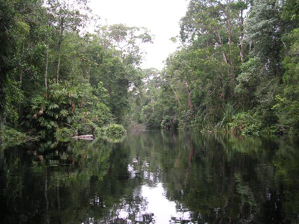 Saure und nährstoffarme Schwarzwasserflüsse durchziehen Indonesiens Torfsumpfwälder