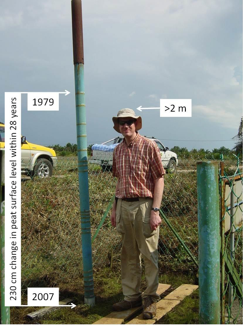 Die Untersuchungen ergaben deutliche Bodensenkungen (Subsidence), wobei durch die stärkere Drainage die höchsten Raten in der Nähe von Kanälen auftraten. In intensiv entwässerten Gebieten wird die Absenkung durch die Oxidation von Torf verursacht und gilt als direktes Maß für den Kohlenstoffverlust. Auch die Absenkung infolge von Feuer und entsprechende Kohlenstoffemissionen sind deutlich nachweisbar.