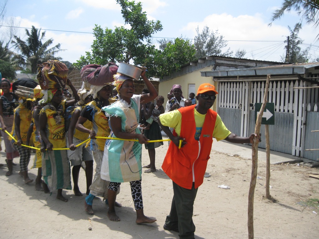 Lokale Rettungs-Komitees und einfaches aber effektives Rüstzeug, hier bei einer Übung in Beira.