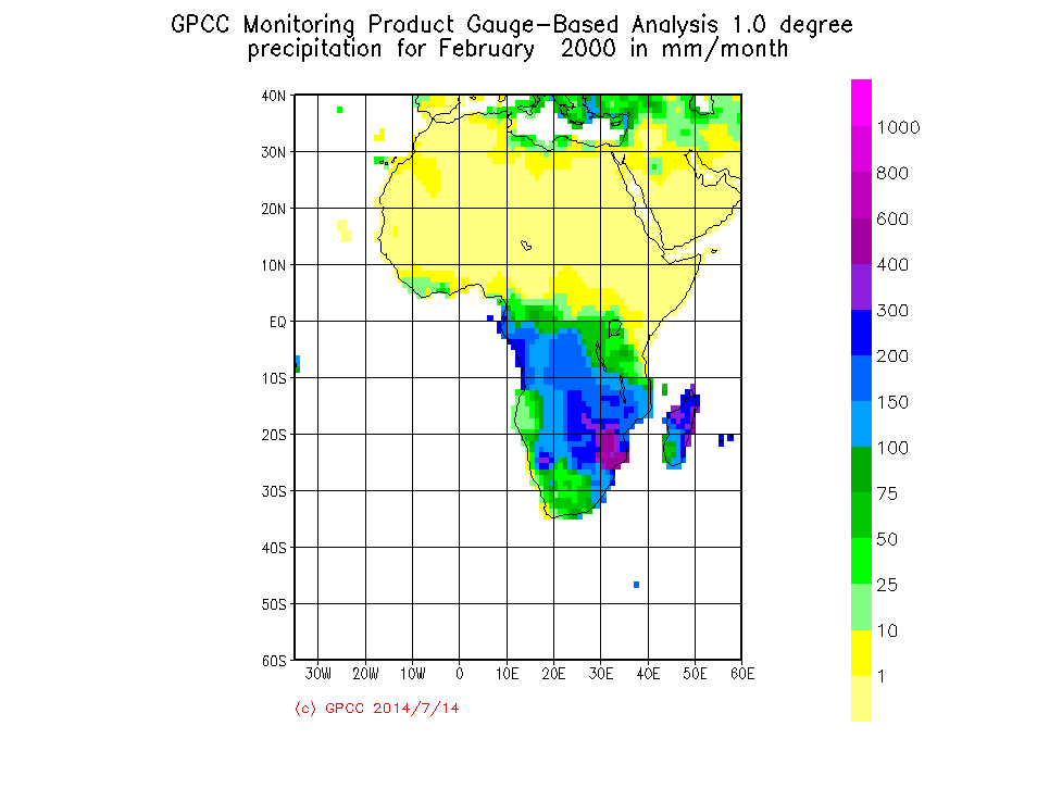 Ein sogar fast noch eindrucksvolleres Beispiel einer Überflutung, die auf einem Satellitenbild nachvollzogen werden kann, befindet sich im Anhang unter Mississippi. Ebenfalls im Anhang befindet sich eine Analyse der Niederschläge im südlichen Afrika, verfasst vom Deutschen Wetterdienst.