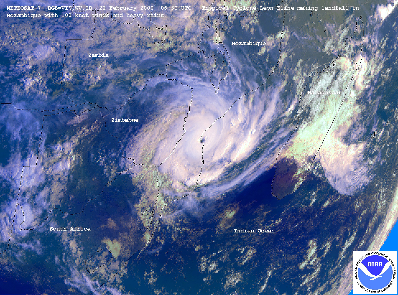 Tropische Wirbelstürme sind um diese Jahreszeit und in dieser Region nicht ungewöhnlich. Ihre Energie ist von der Wassertemperatur abhängig und die betrug dieses Jahr außergewöhnliche 29 °C bei dem Tropischen Wirbelsturm Eline (siehe Cyclone Leon-Eline). Die Zeitspanne von der Annäherung bis zum Festlandskontakt mit gut ausgeprägtem Auge war etwa vom 19.2.2000 - 0 Uhr bis zum 22.2.2000 abends.